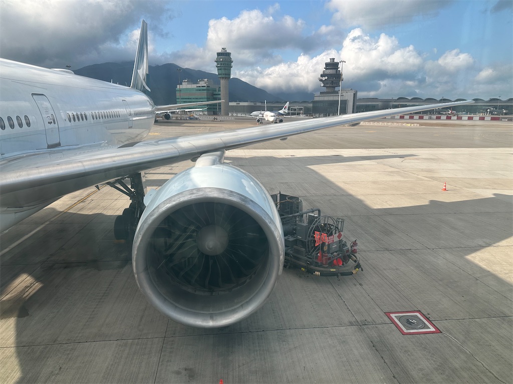 満腹になったところで眠気に襲われ、気づいたら香港に到着。2時間もかからない超短距離線はストレスをほぼ感じることなく目的地に到着できました。
