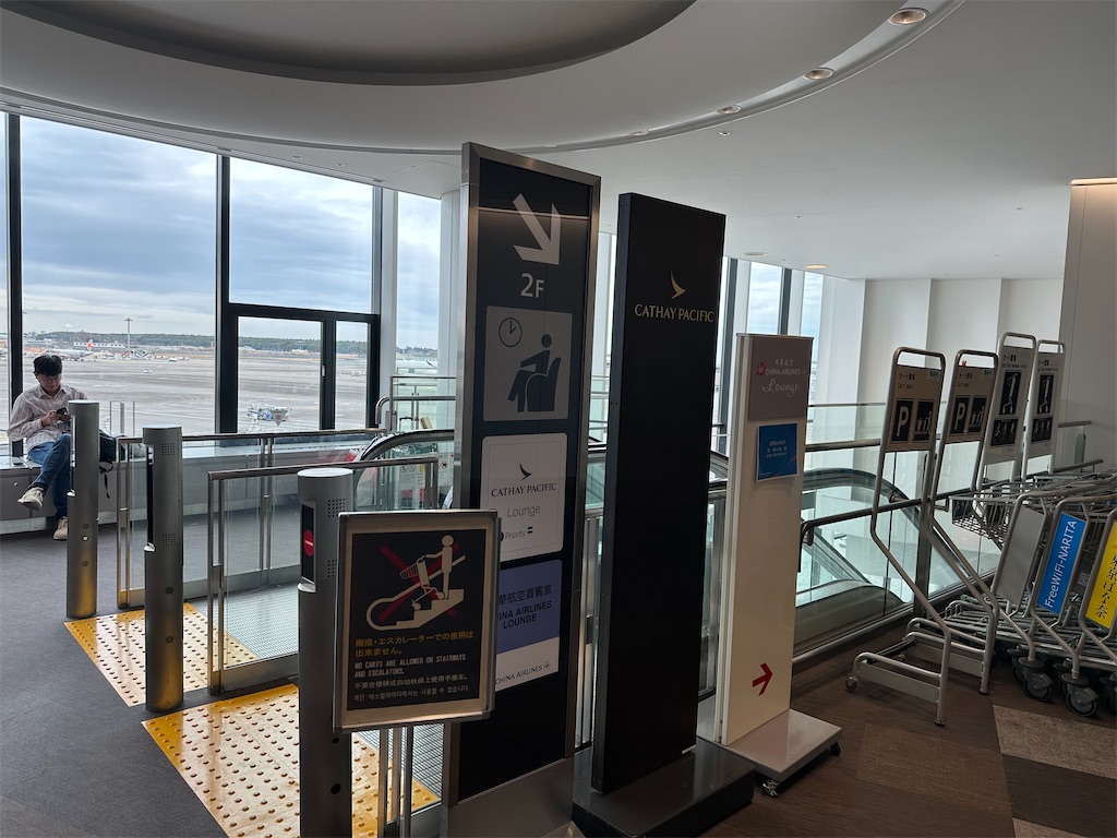 さて、キャセイは成田に独自のラウンジを持っています。出国エリアの案内表示が少なくてラウンジの位置が分かりにくいのですが、隠れ家的でなかなか素敵。奥行きがあって広々しています。