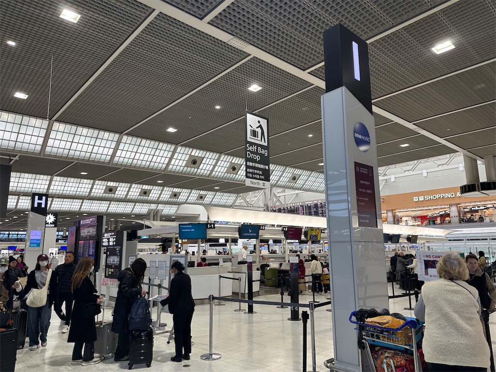 台北便の約1時間前に香港便もあるのでチェックインカウンターは若干混雑していたものの、流れはスムーズ。今回僕を担当してくれた女性もとても丁寧に対応してくれました。