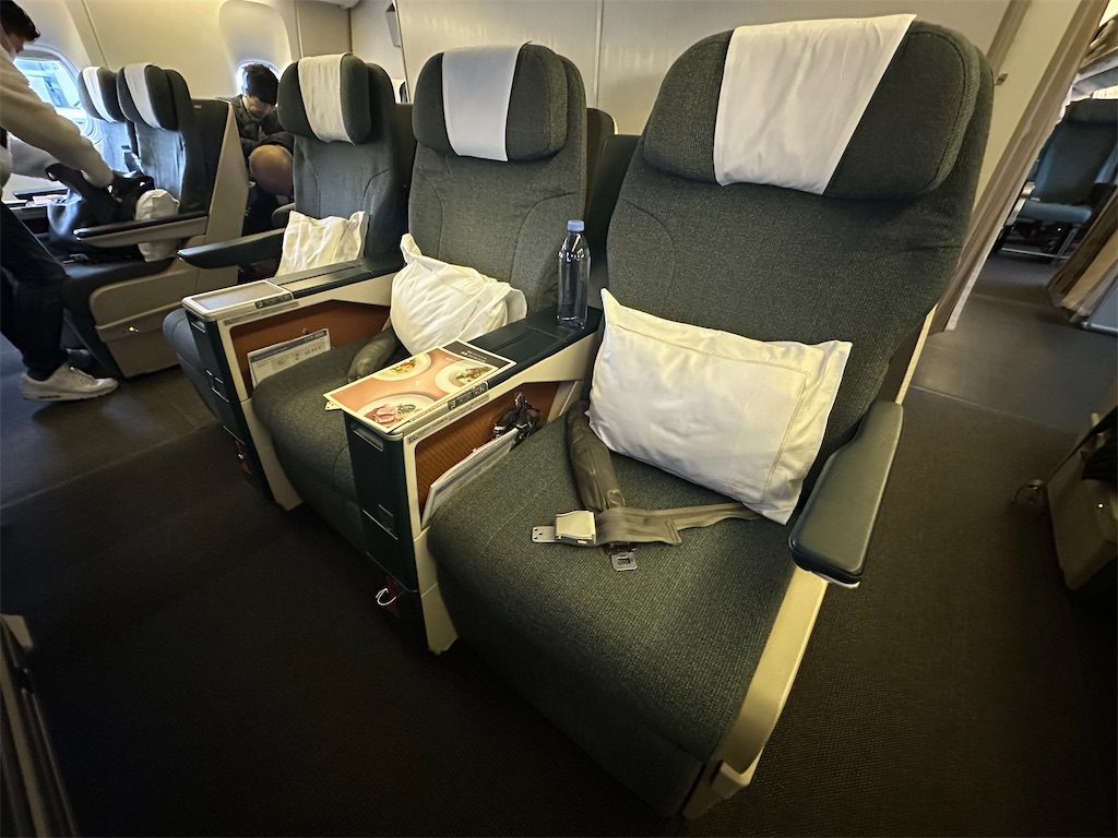 実は今回、全区間でプレミアムエコノミーに乗れたらいいなぁと思っていたのですが、機材繰りのため、台北→香港はエコ、香港→東京はプレエコ、東京→台北はビジというだんだんグレードアップするような行程になりました。リージョナルタイプの座席でしたが、楽しいひと時を過ごしてきましたのでご紹介します。