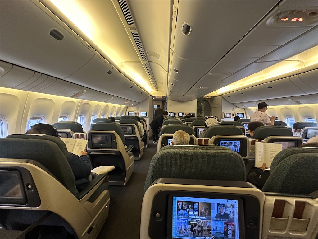 【日本人が多いせいか香港発着便と雰囲気の違う機内】